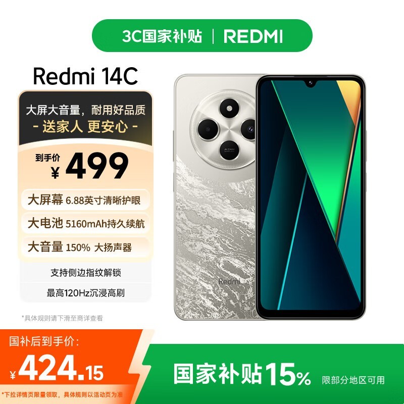 红米14C 4G手机(4GB+64GB冰川银)优惠价424元